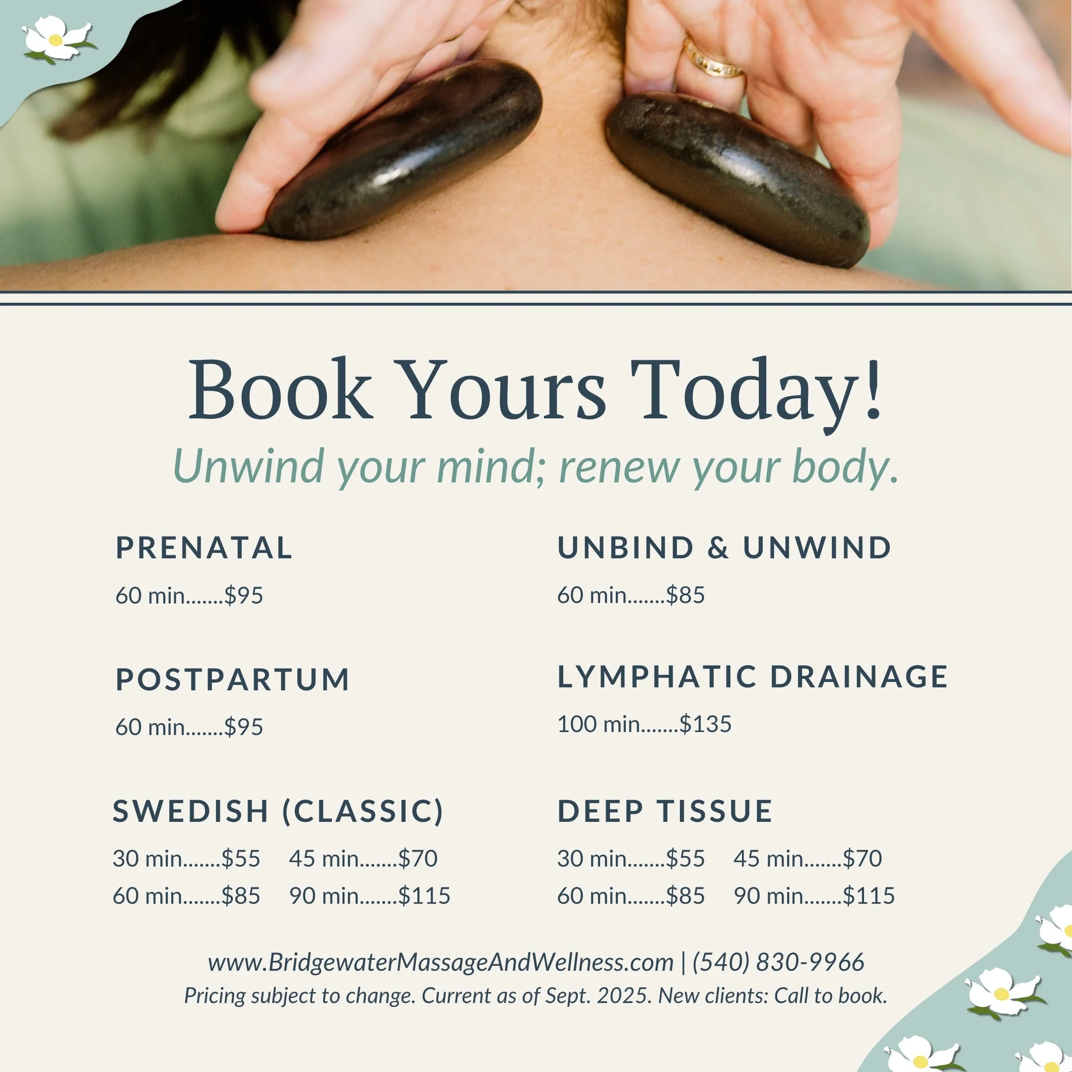 Brand design services for a Licensed Massage Therapist and Yoga Instructor based in Bridgewater, Virginia.